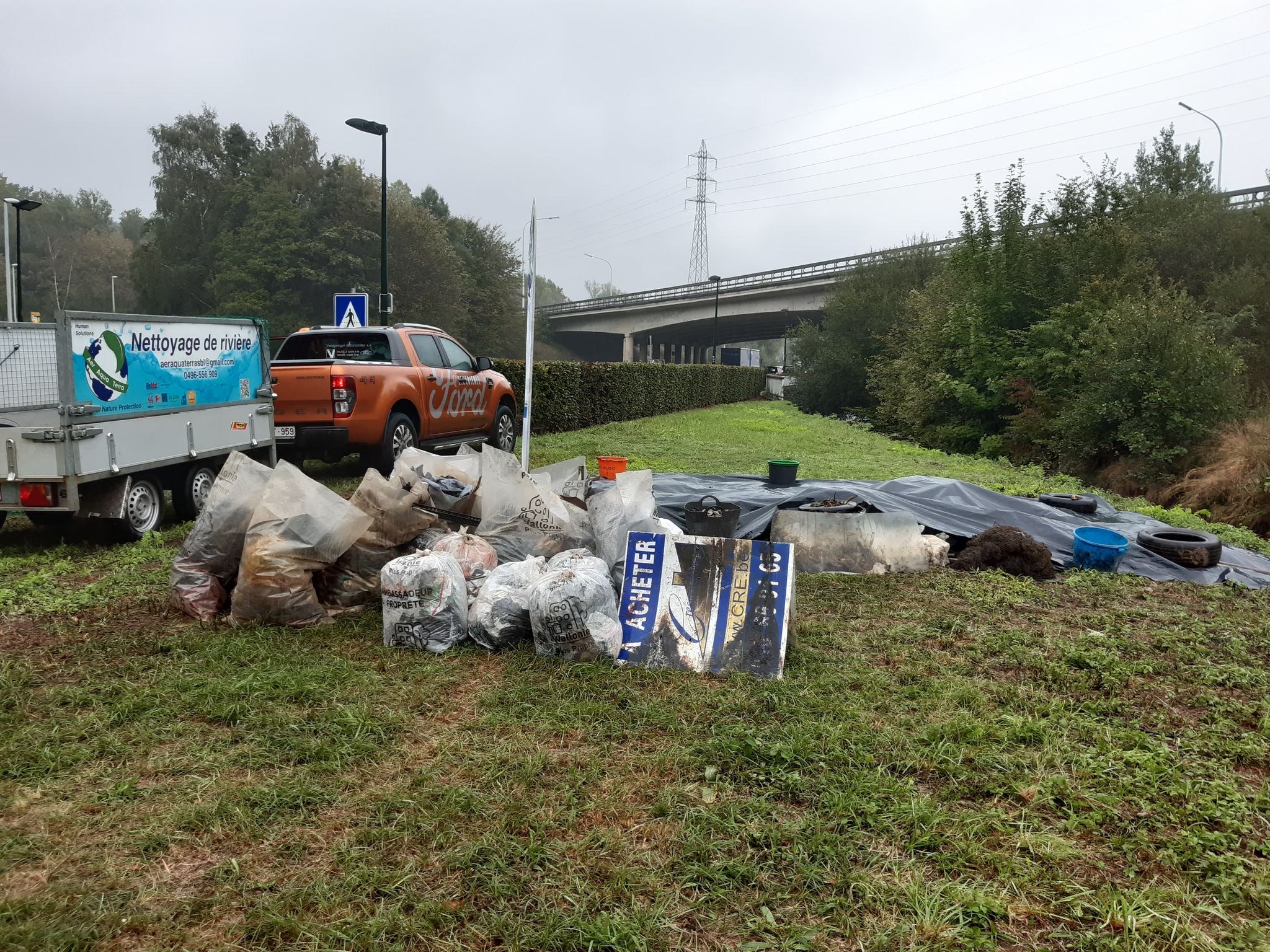 Deuxième GNP, là où nous avions eu notre dernière grosse journée au mois de mars et continuons à nettoyer l’Orne à Court-Saint-Etienne… Là aussi nous bénéficions d’une très belle participation citoyenne et même un team building avec Ligue Francophone Belge de Sauvetage 🙂