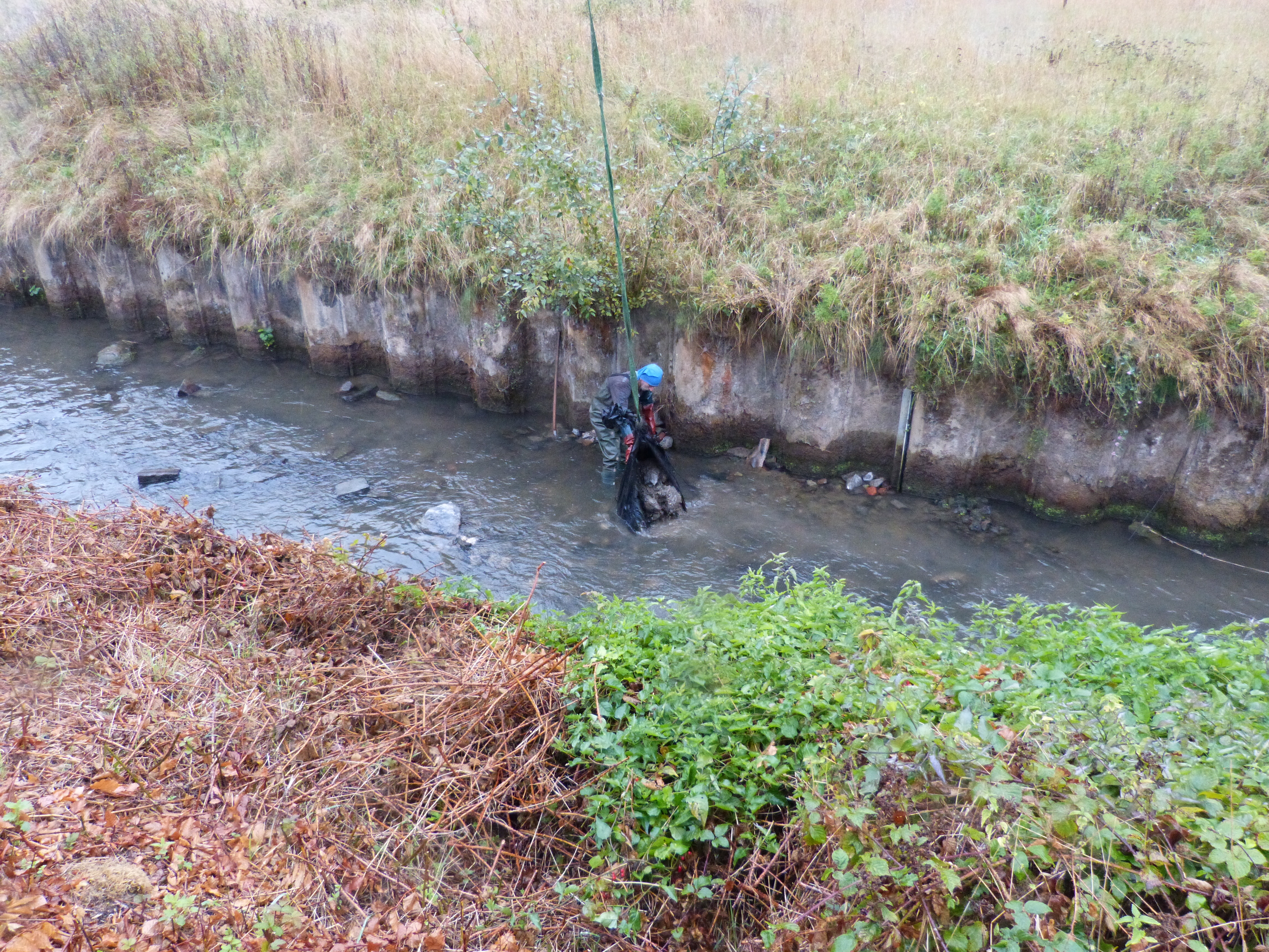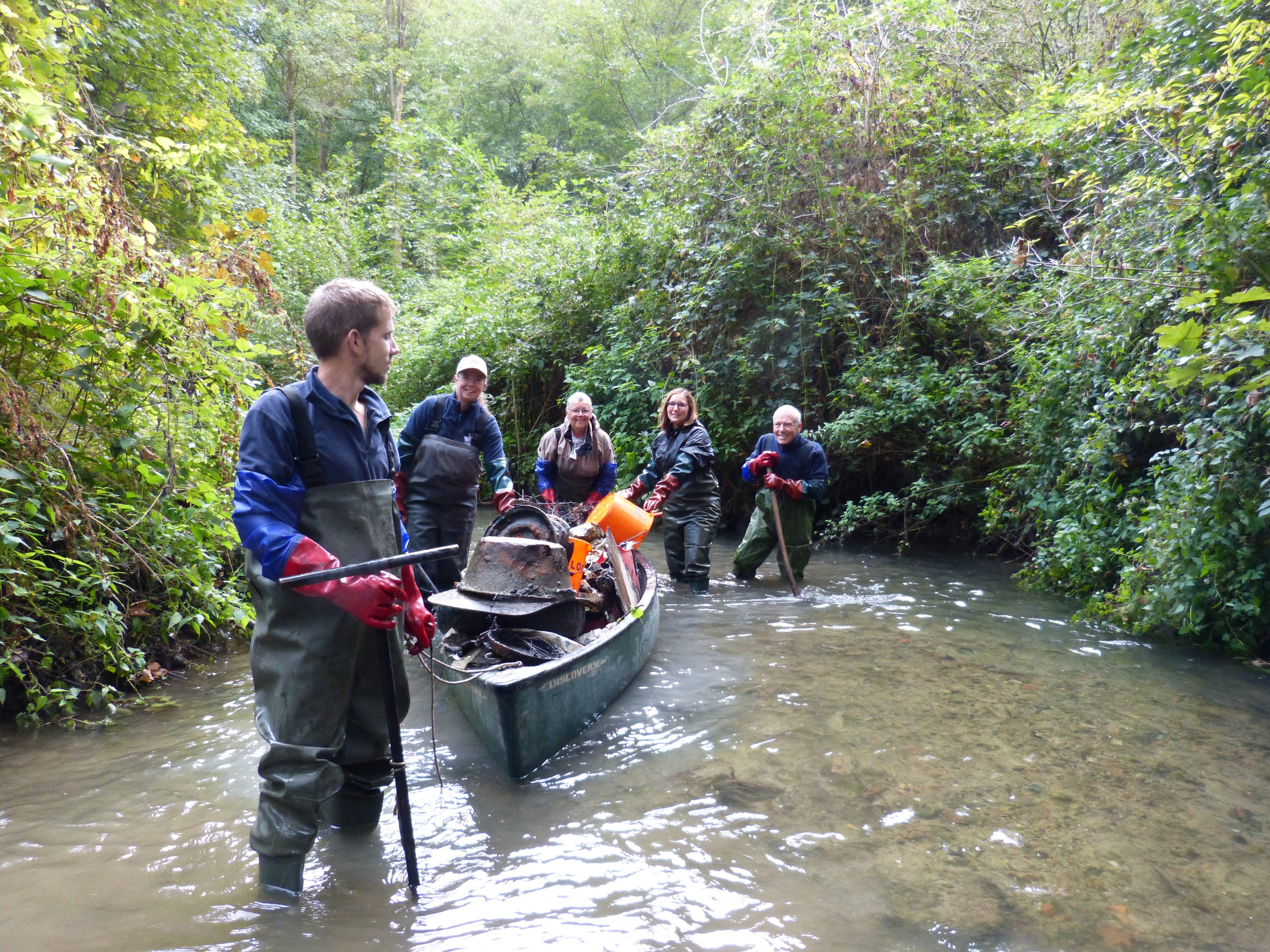 Nous sommes d’abord parti à l’abordage de l’Argentine à Rixensart… un petit tronçon de rivière que nous connaissons fort bien, qui a subi des dégâts d’un restaurateur du temps jadis… Les bénévoles sont venus assez nombreux pour parvenir à nettoyer tout le tronçon cette année. Grace à Besix Foundation, nous avons même pu faire un petit extra dans la Lasne.