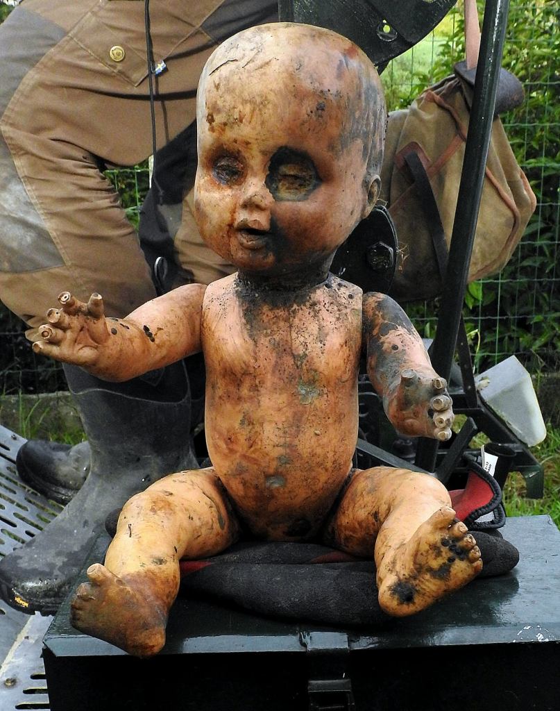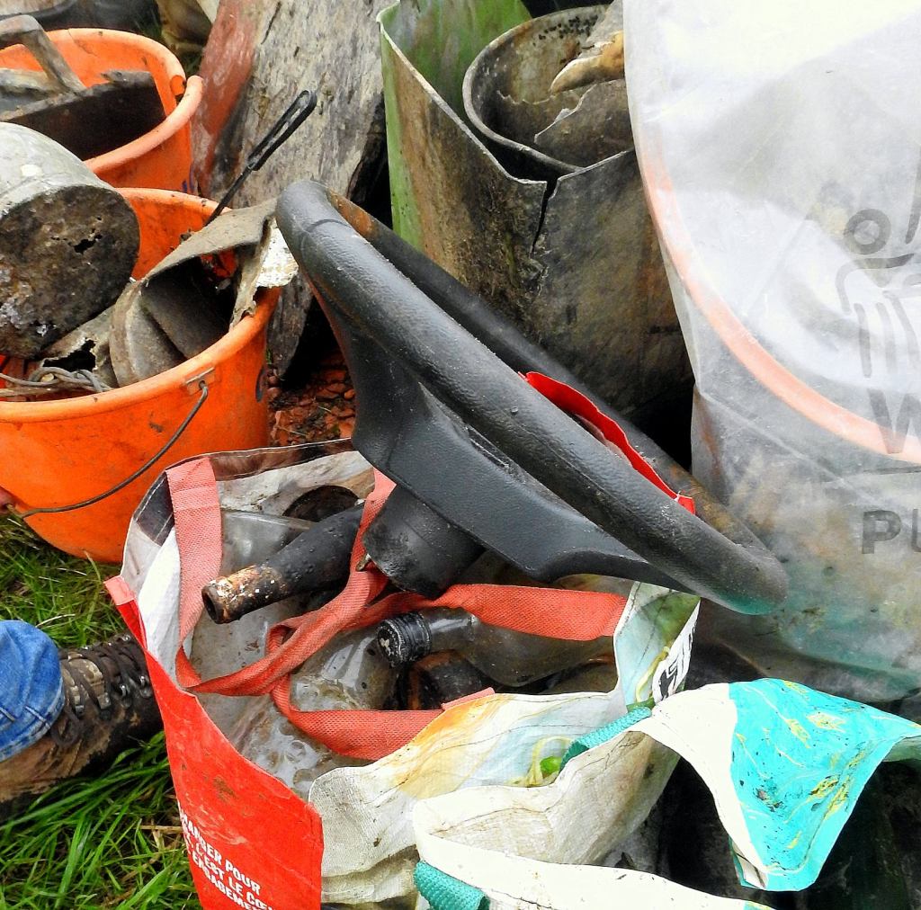 Que d’antiquités, nous avons trouvé notre premier Raider… un emballage fondu de yaourt GB… une collection de chaussures très vintage, sans parler du maillot enfant en tricot et de plusieurs dizaines de langes ! Tous les déchets sont conservés dans le lit de la rivière…