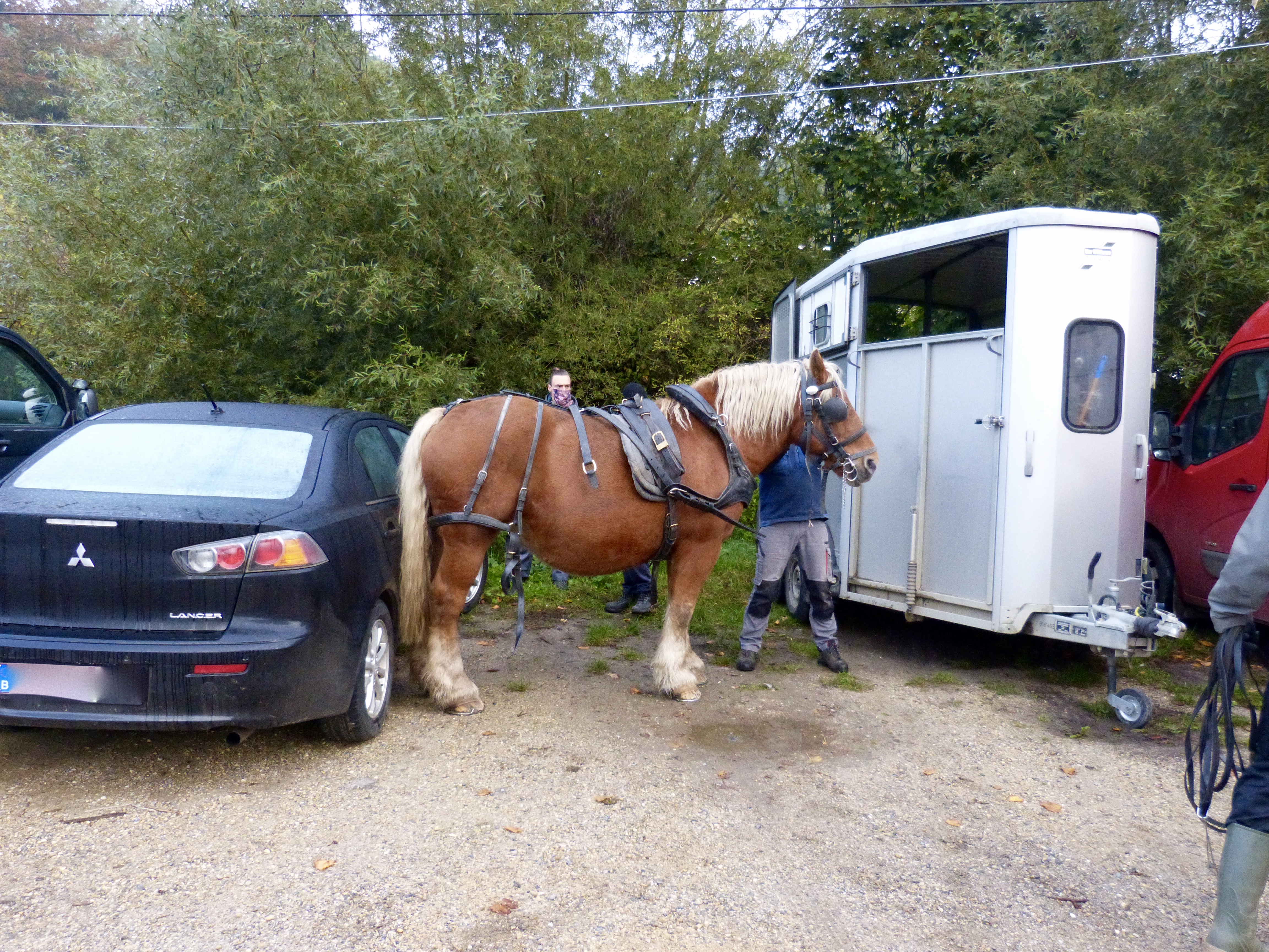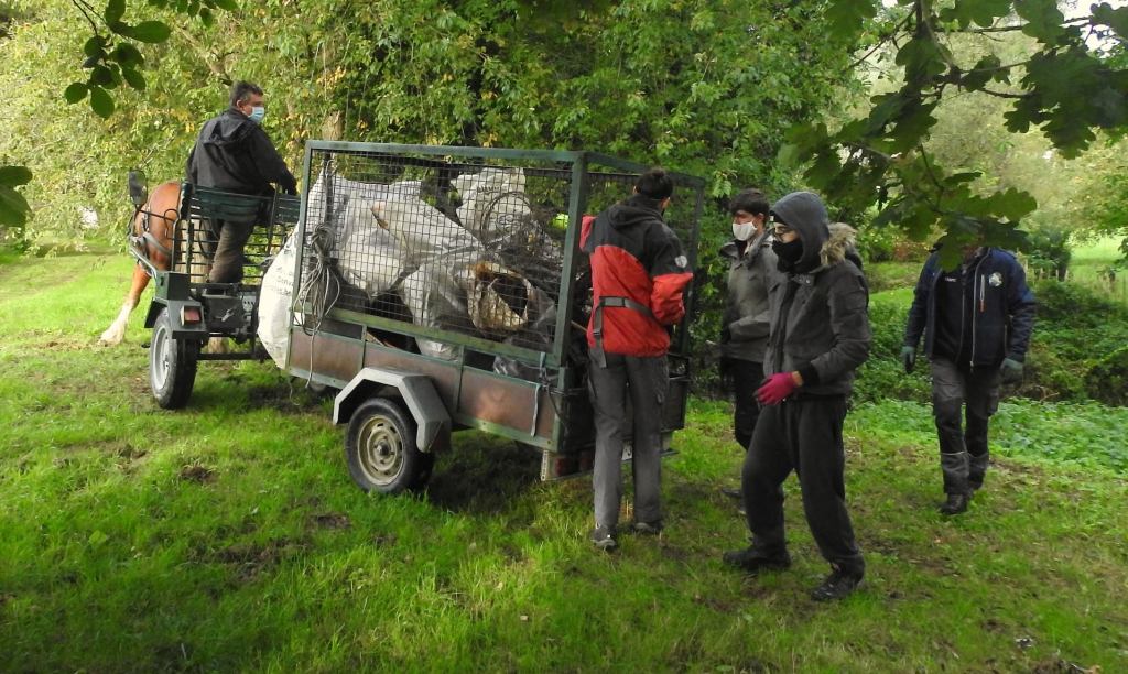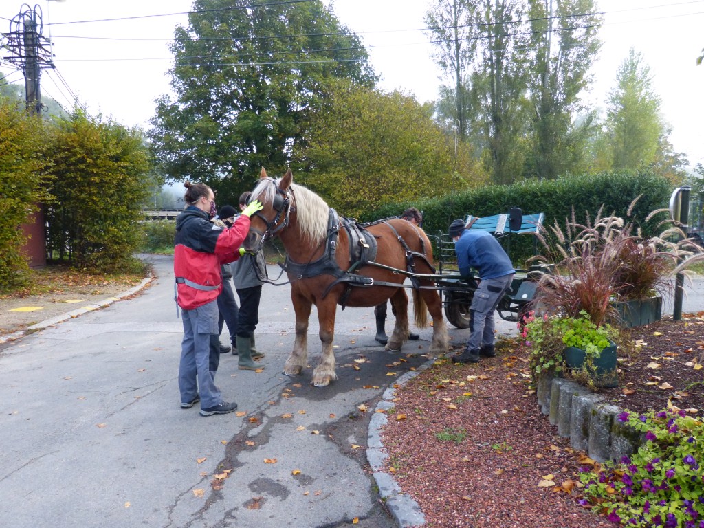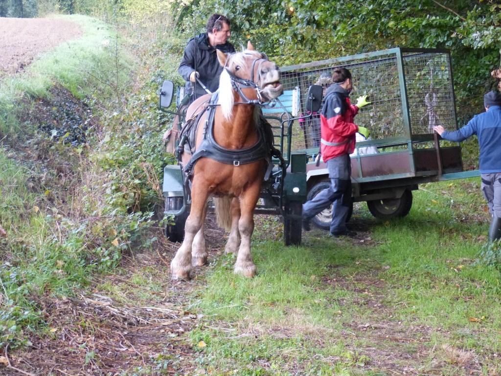 La Néthen borde l’ancienne voie vicinale qui est devenu un chemin de campagne, nous avons fait appel à l’aide de La Cordiante pour l’évacuation des déchets vers la route, ils sont au rendez-vous, avec Quinoa, magnifique jument bien courageuse ainsi que ses gentils accompagnateurs !