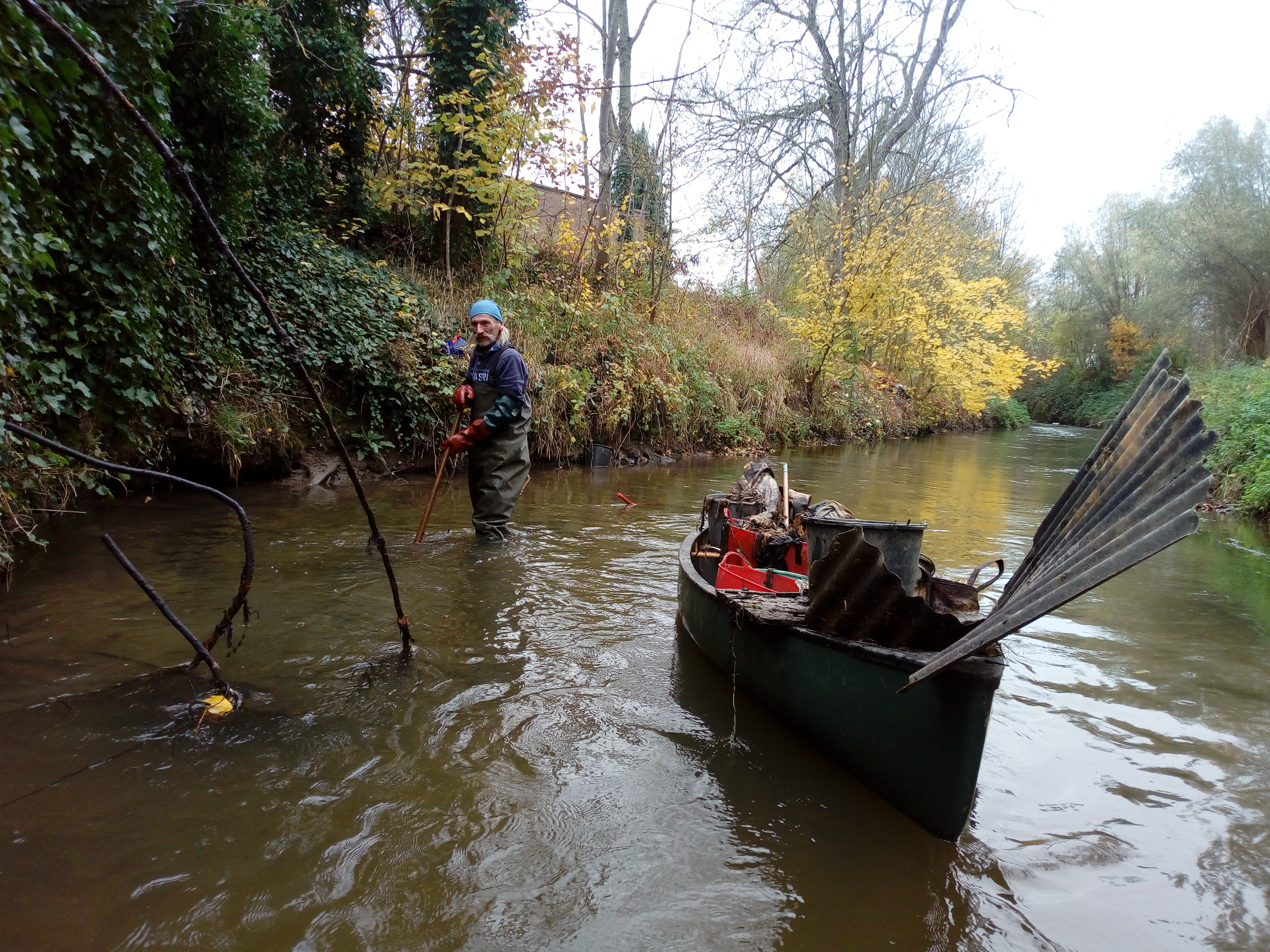 C’est Julien qui entame le travail à Court-Saint-Etienne, ayant dû rester au bord d’elle trop longtemps, il s’est remis dans le bain au mois d’octobre et démontre son incroyable capacité de nettoyeur de rivière !