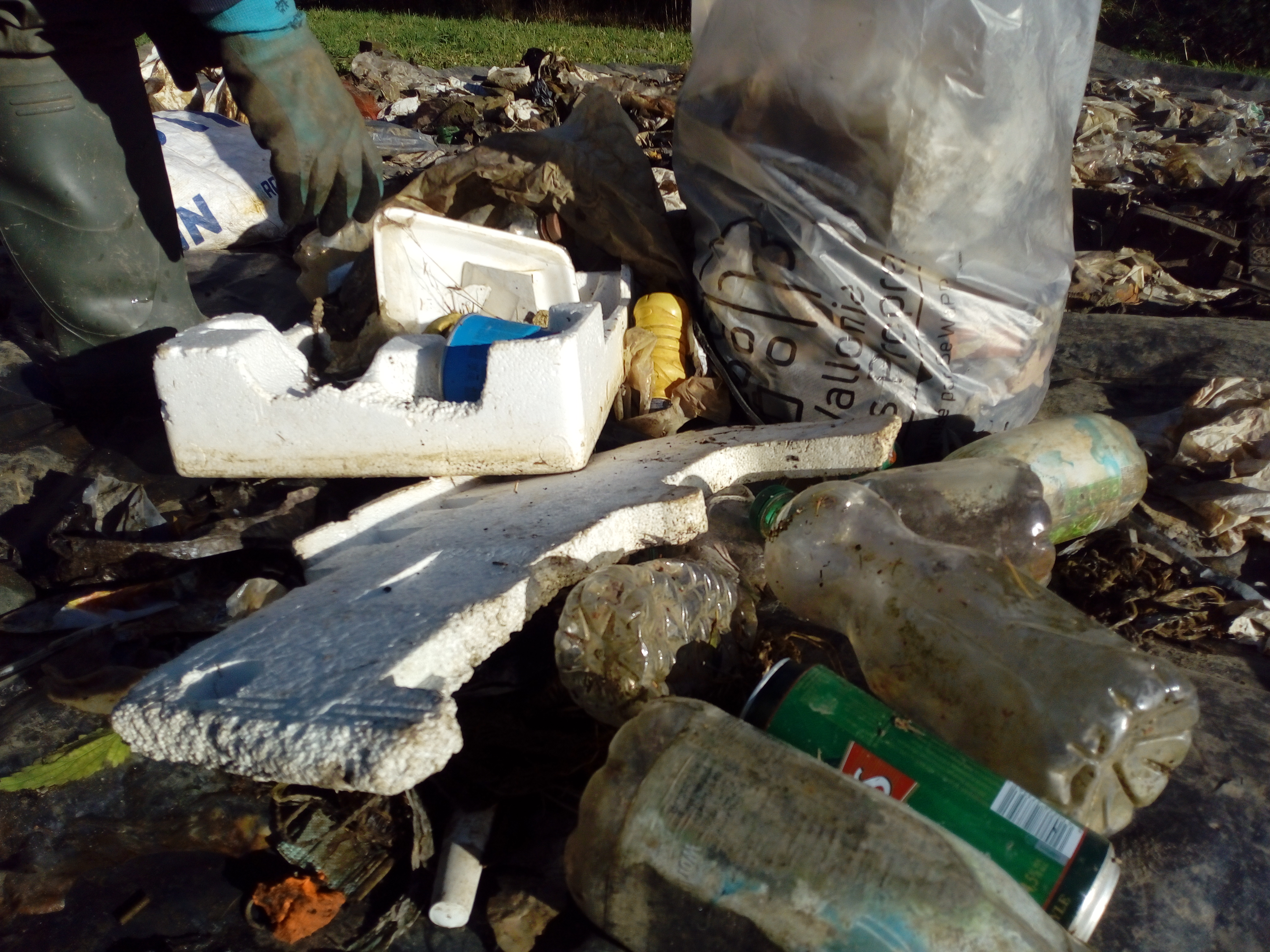 Tous les tronçons ont leur particularité de « nature » de déchets… ici ce seront les sacs ultra polluant ayant contenu des moules… ainsi, les pollueurs ont infectés leur « propre » nourriture avec ces sacs !