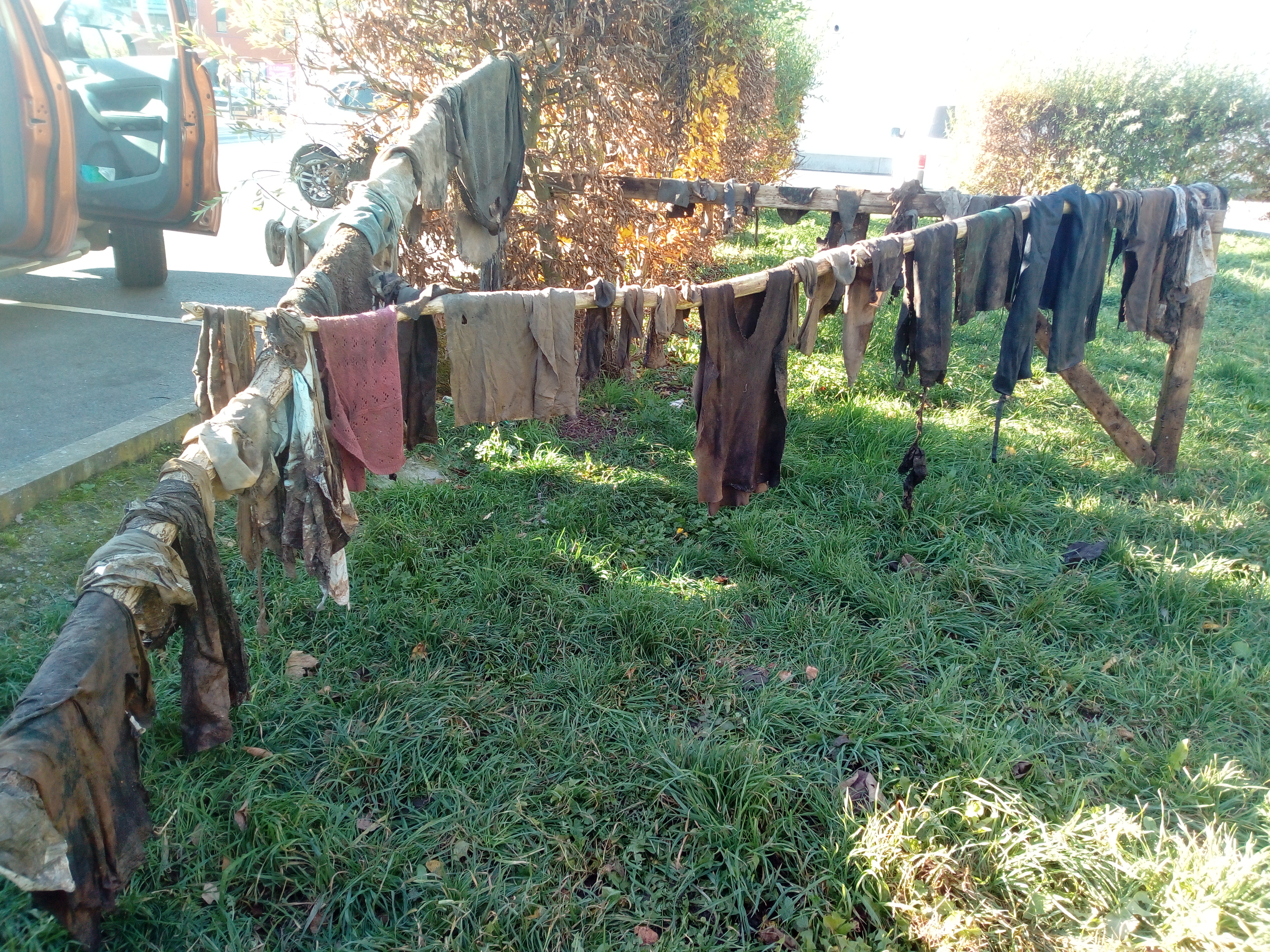 N’ayant ni pont, ni barrière, ni branches disponible pour faire sécher les nombreux tissus d’un autre âge… d’une époque que les moins de 20 ans ne peuvent pas connaitre, Julien nous fabrique un magnifique sèche-linge avec les matériaux disponibles en surface 🙂