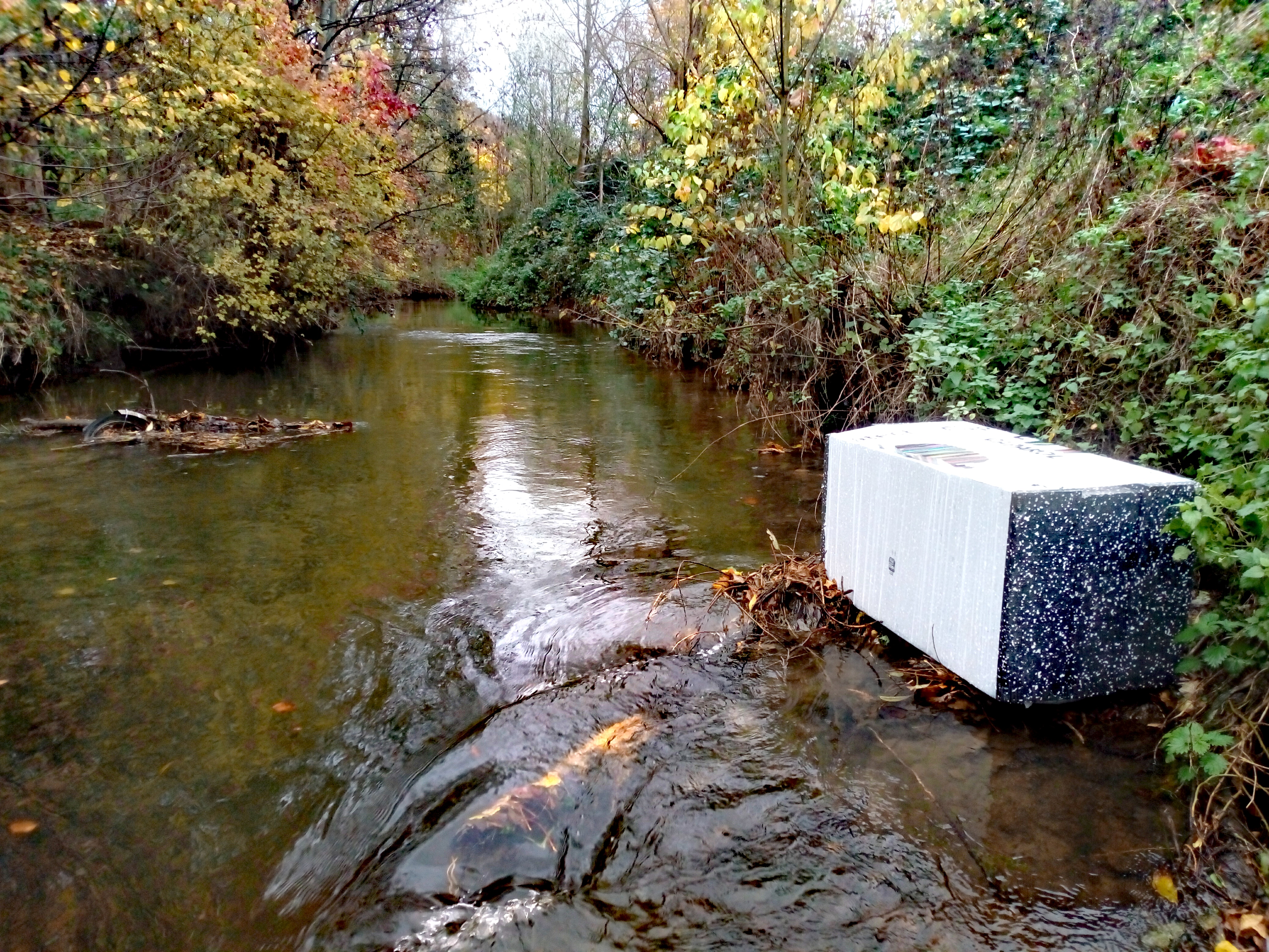 Petit cadeau provenant d’un chantier de construction d’immeuble en bord de Dyle… carnage au polystyrène évité !!!! Ah, la négligence a encore de beaux jours devant elle… construisons, bétonisons tout autour de la rivière… pour la cacher, tout ira bien mieux !