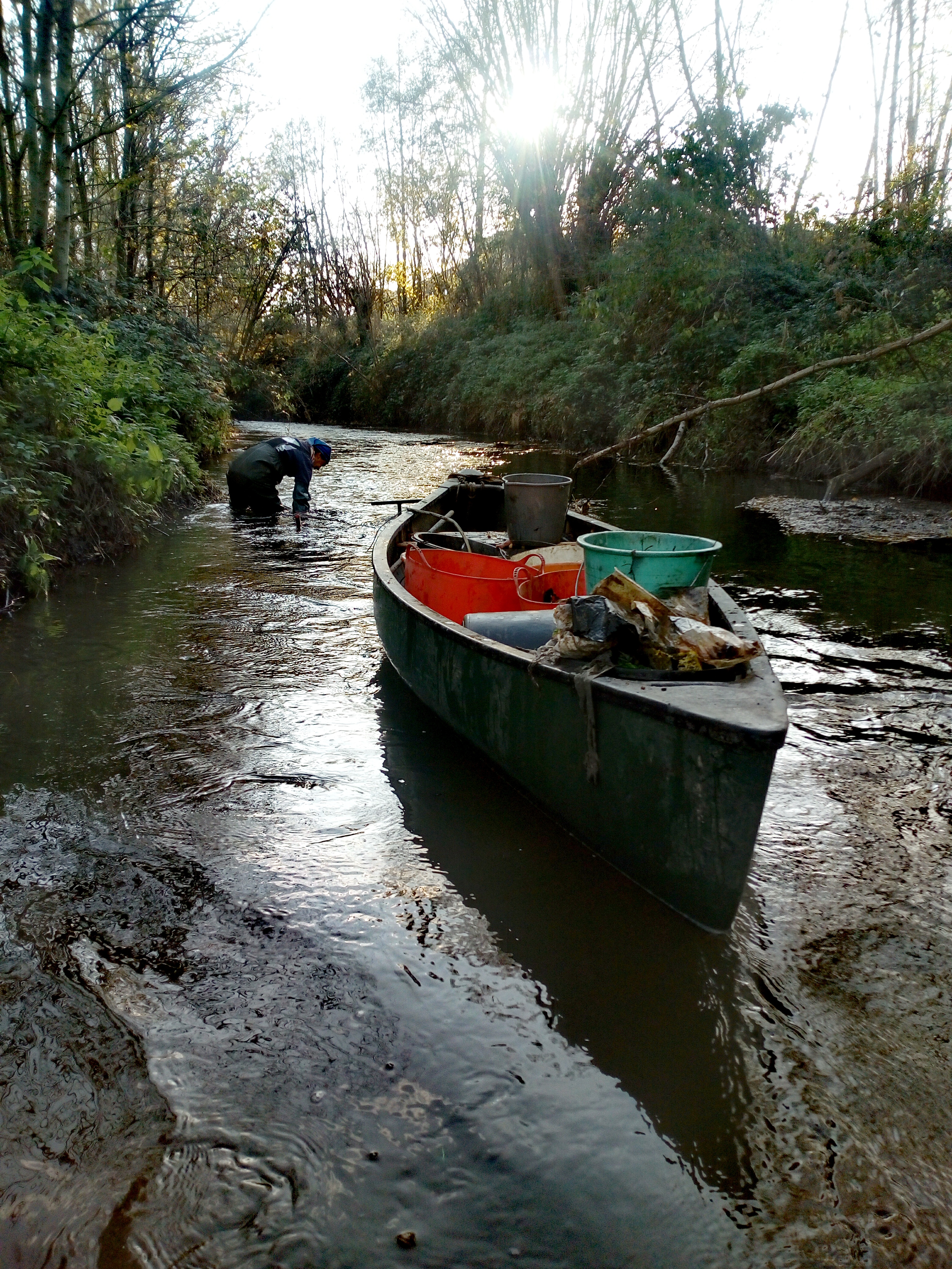 Ayant été empêché de Dyle au mois de mars, pour cause de crue, nous sommes heureux de nous installer pour une action longue durée… 7 journées supplémentaires avec Johnson le canoë et une bonne dizaine de bénévoles qui se relayent au fil des jours et de l’eau !
