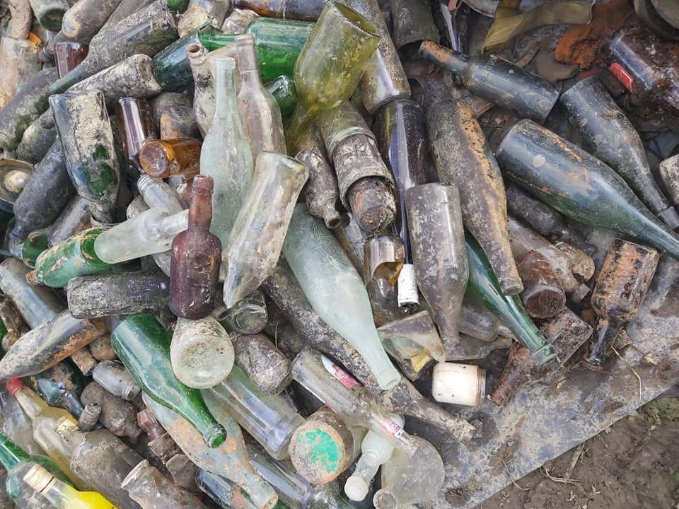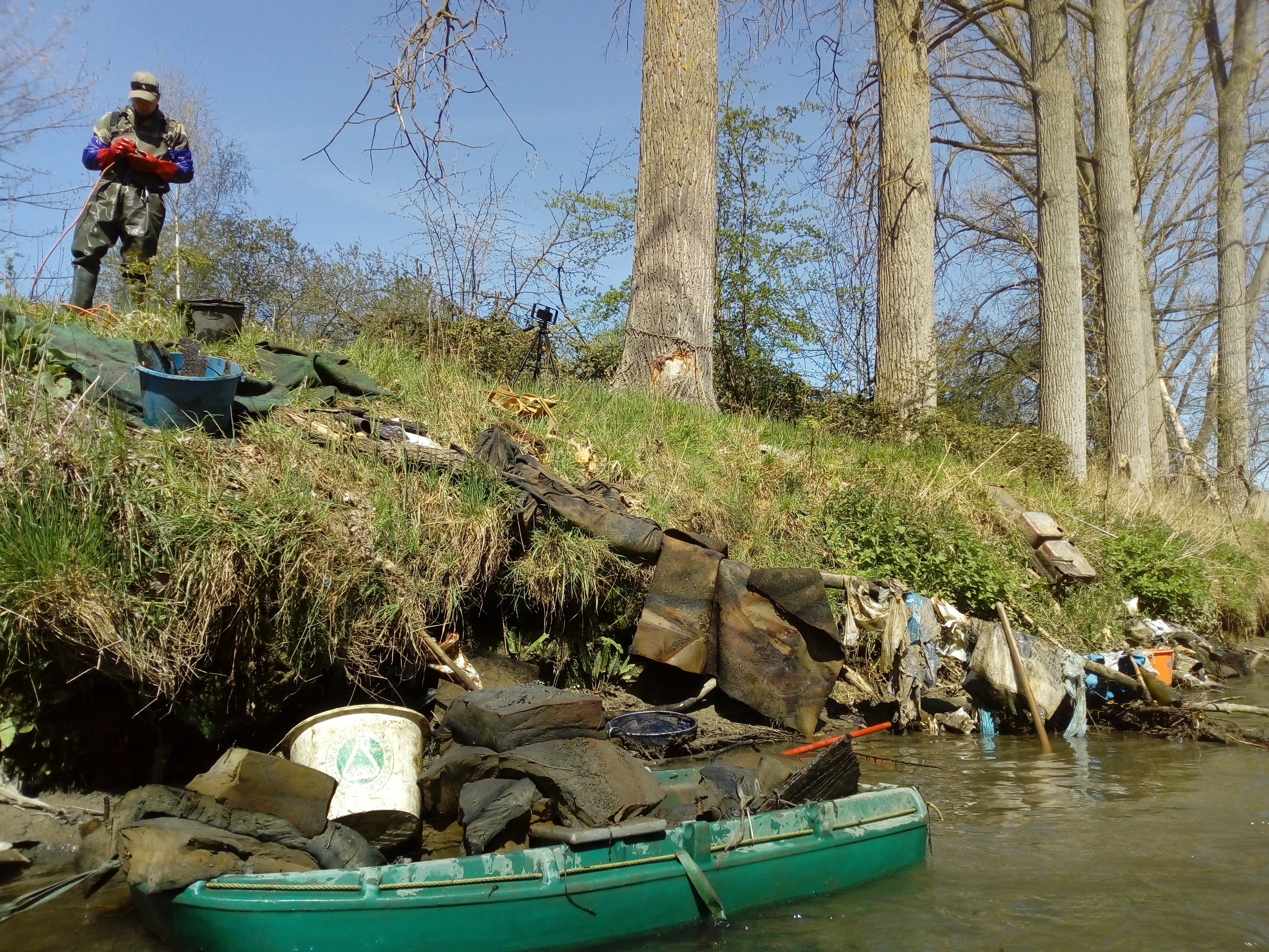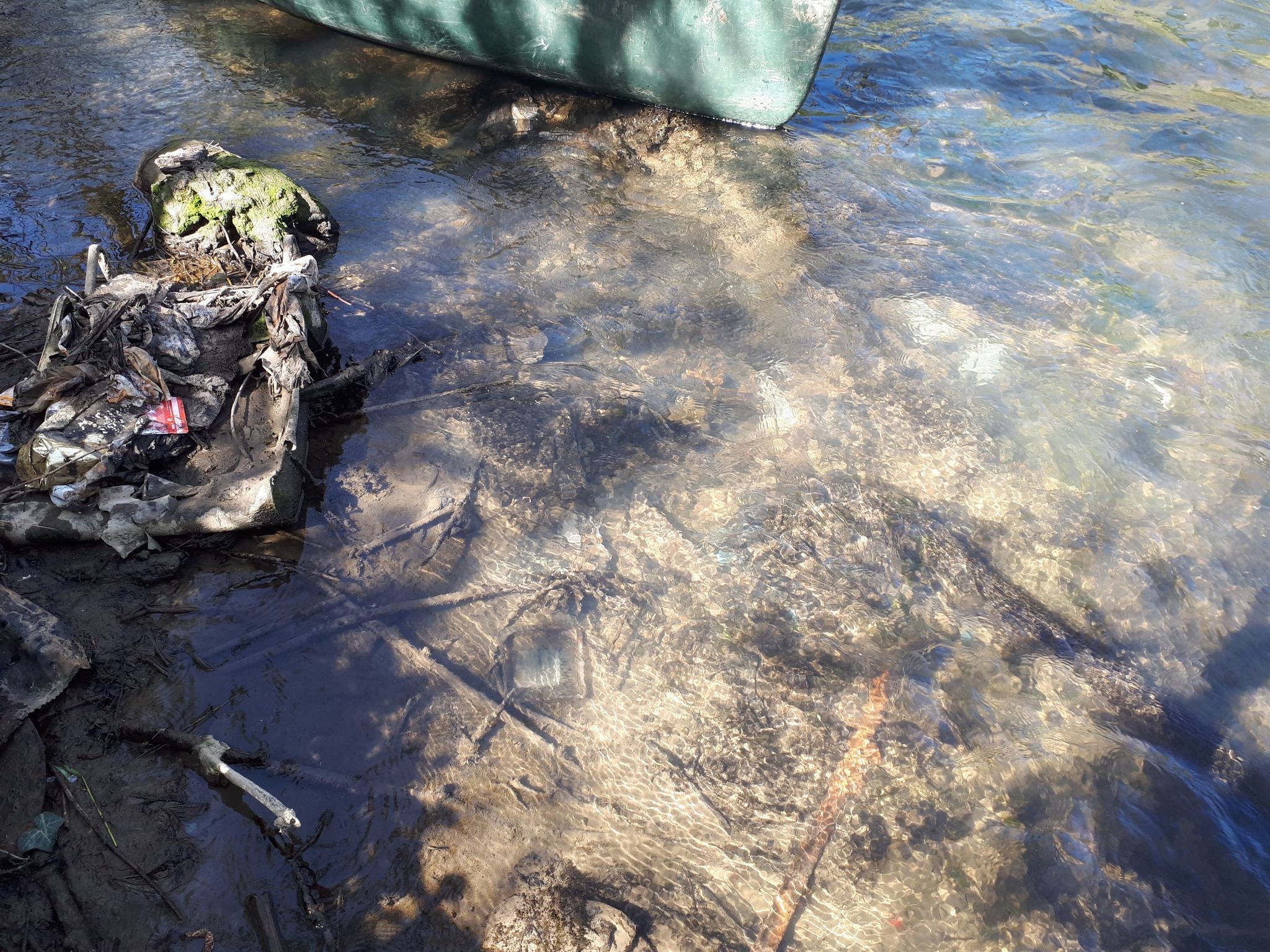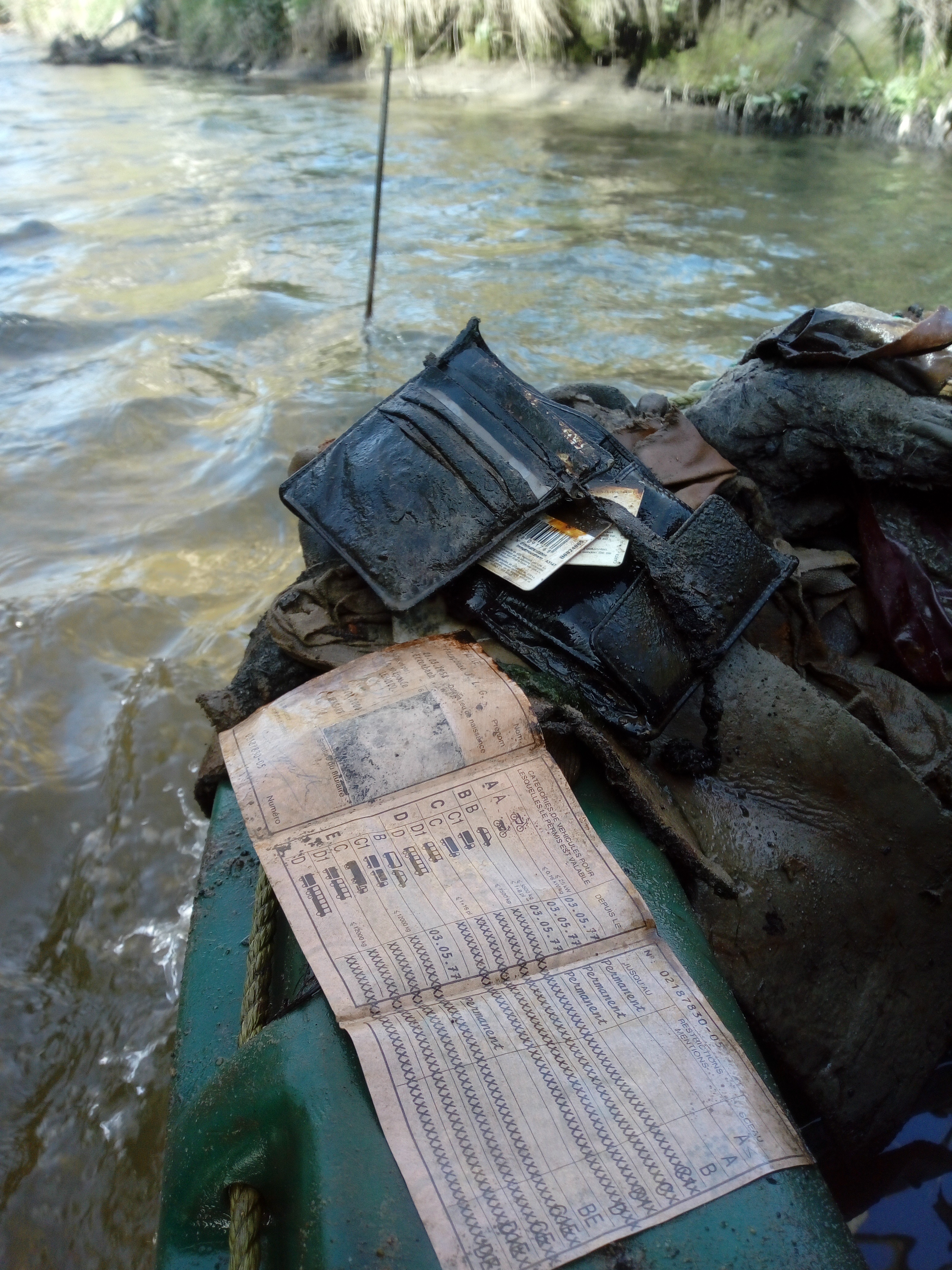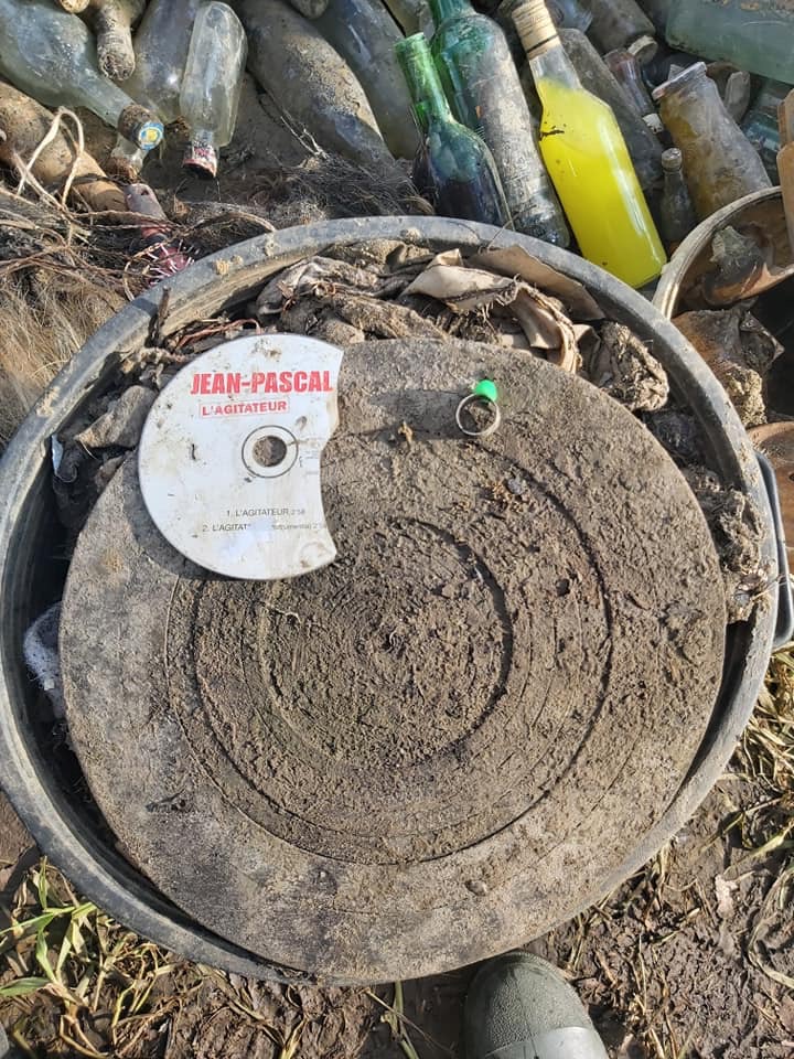 Les déchets forment une épaisse lasagne, nous devons effectuer de nombreuses repasses, en effet, la rivière, réactivée, chasse le sable qui couvre les sous couches et chaque jour nous offre de plus anciens déchets… à ce stade, nous commençons à parler d’archéologie du 20ème siècle 🙂