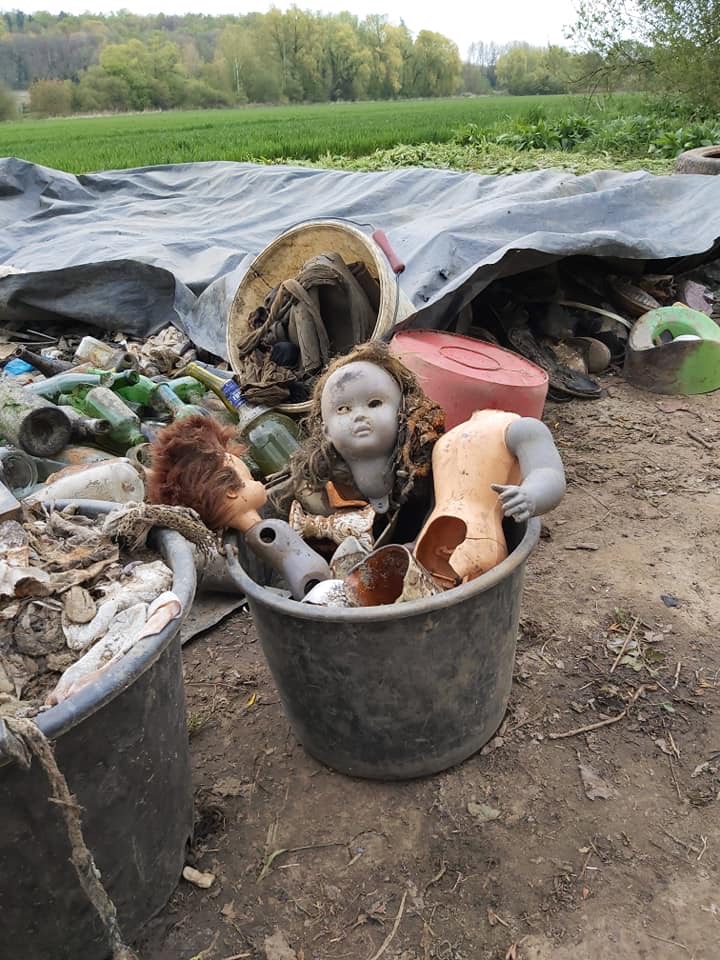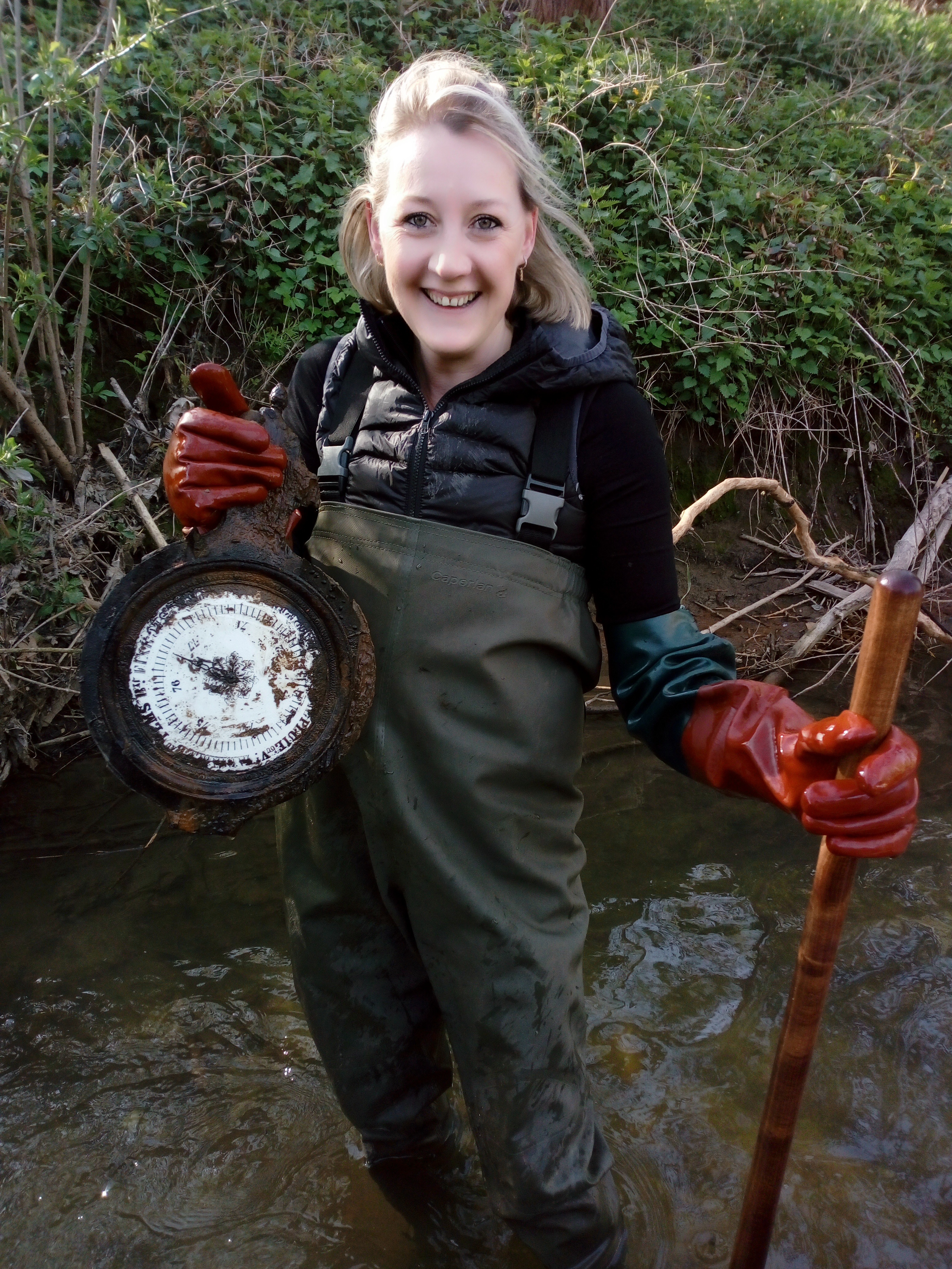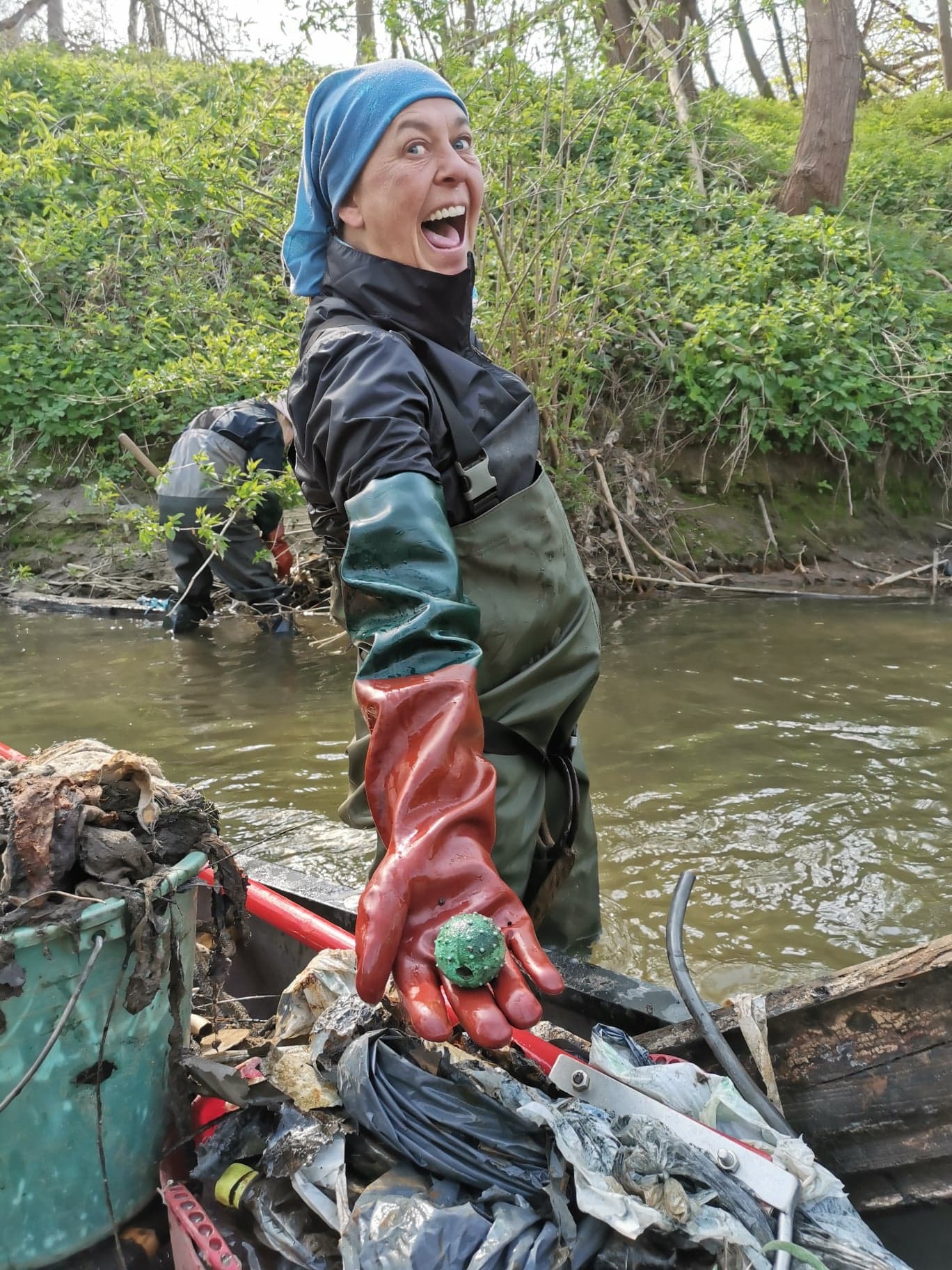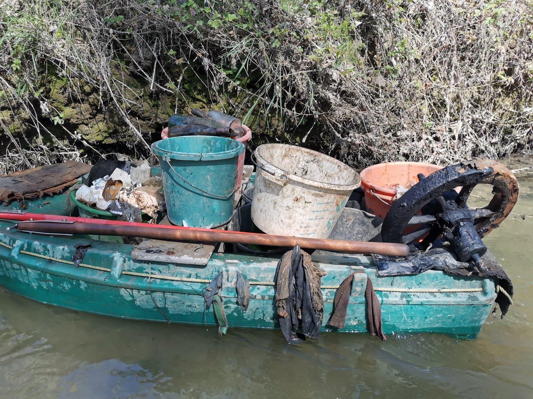 Les déchets forment une épaisse lasagne, nous devons effectuer de nombreuses repasses, en effet, la rivière, réactivée, chasse le sable qui couvre les sous couches et chaque jour nous offre de plus anciens déchets… à ce stade, nous commençons à parler d’archéologie du 20ème siècle 🙂