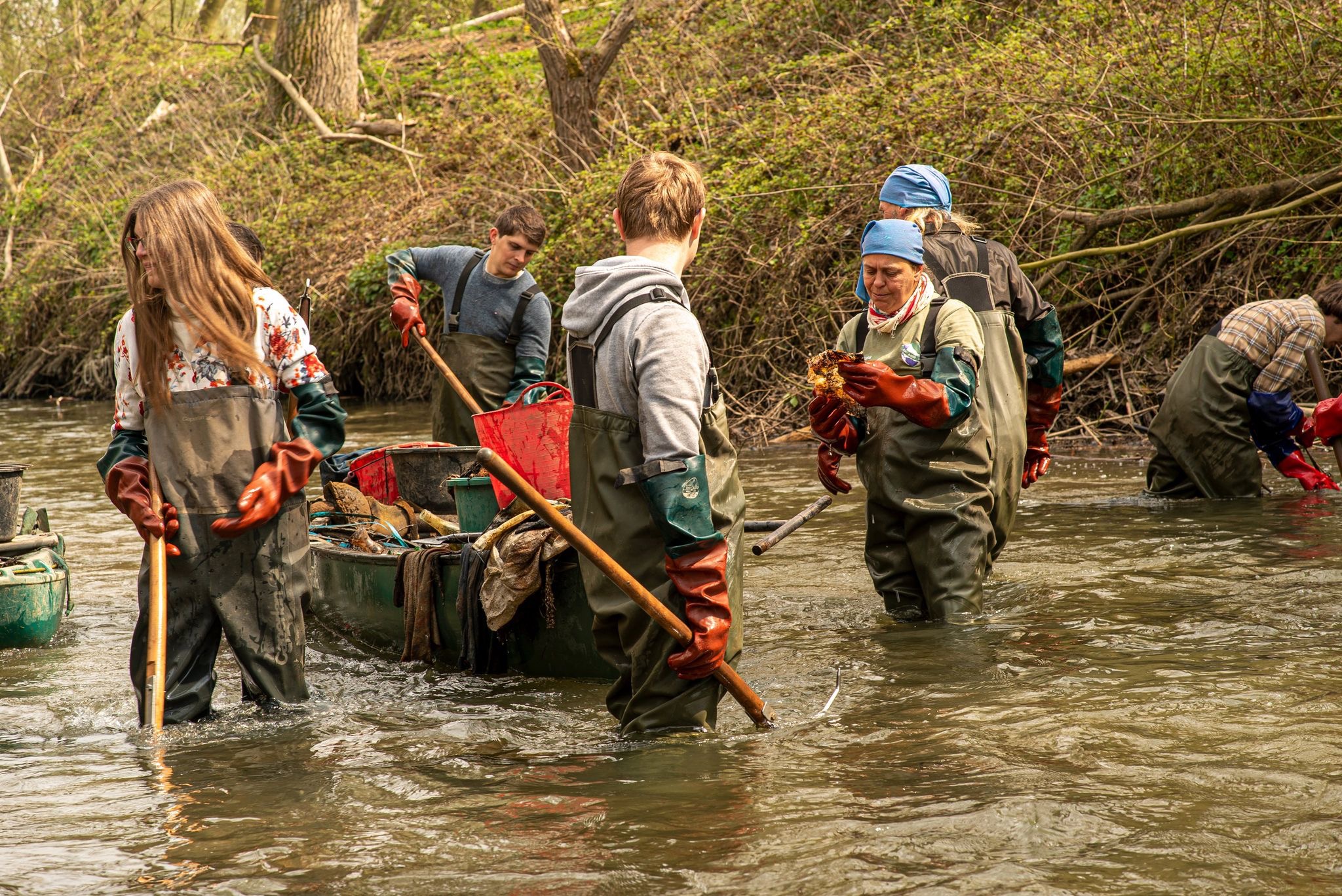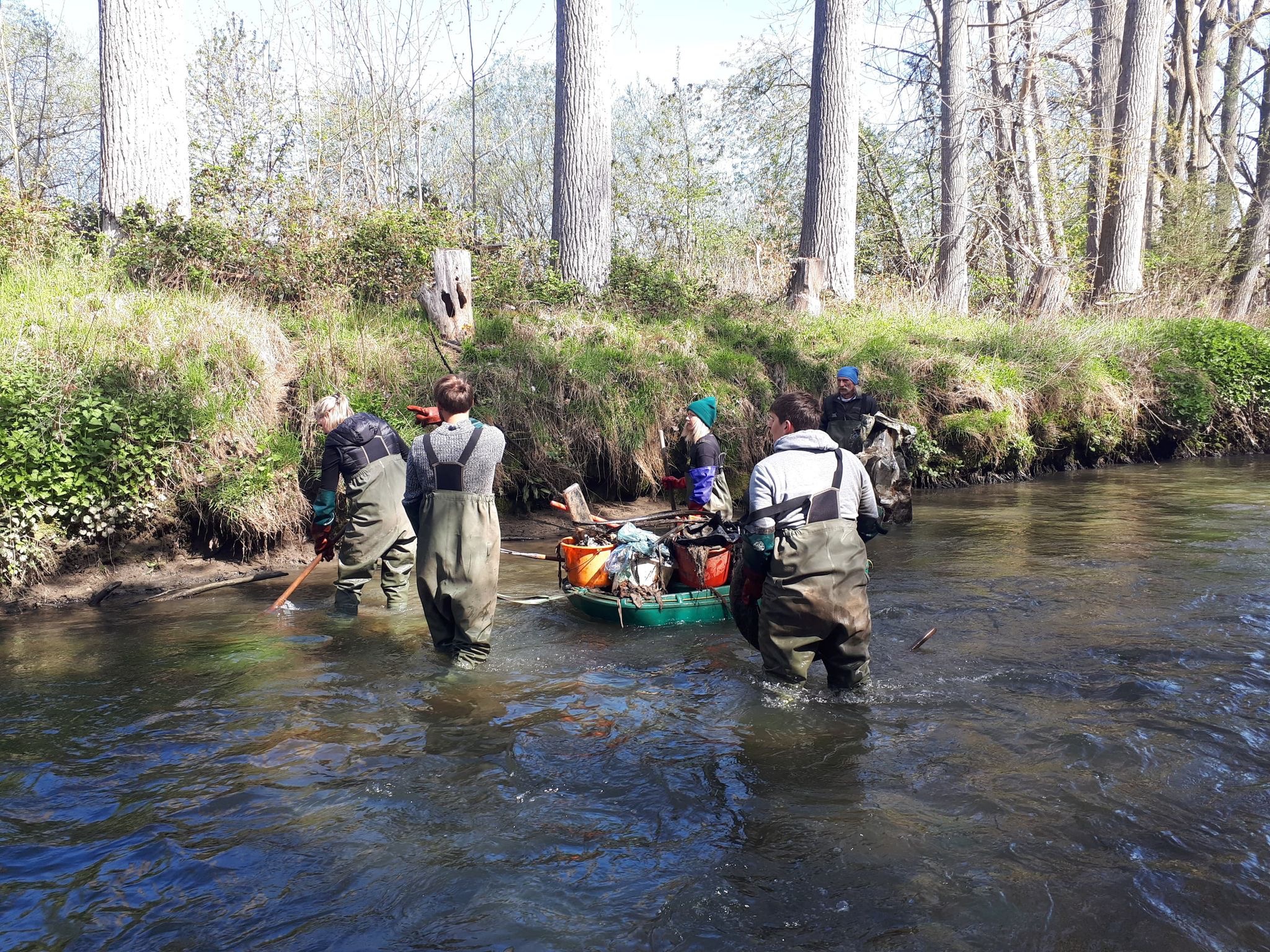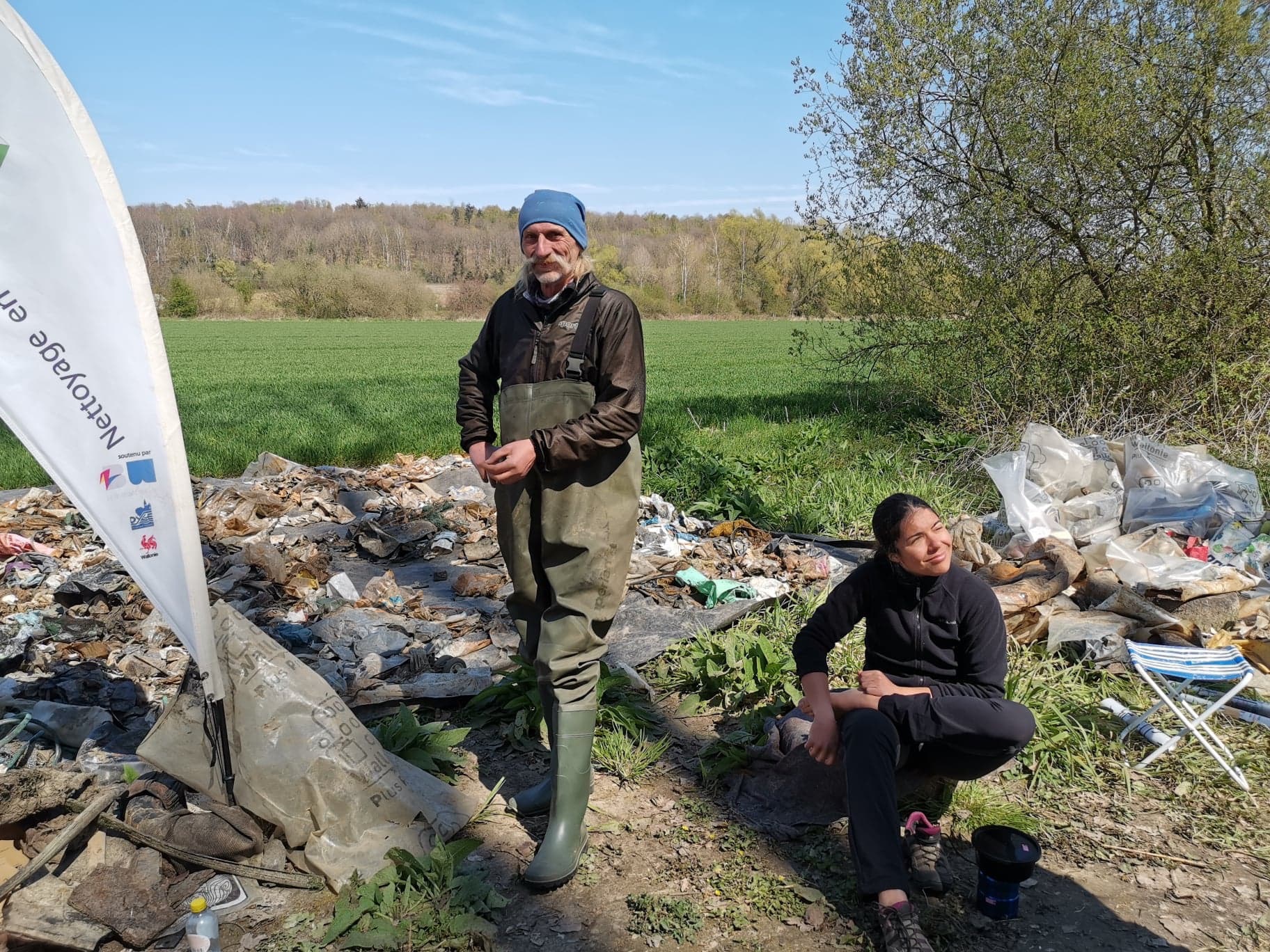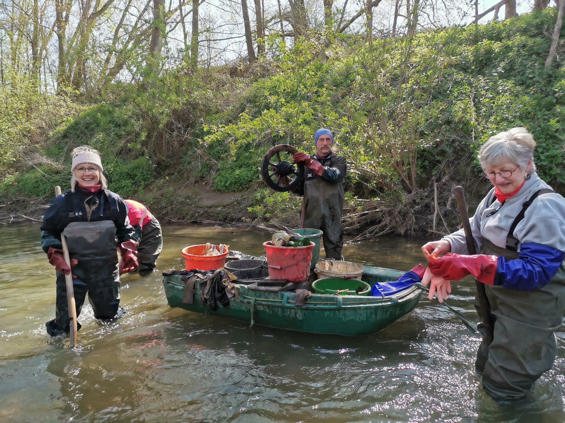 Les déchets forment une épaisse lasagne, nous devons effectuer de nombreuses repasses, en effet, la rivière, réactivée, chasse le sable qui couvre les sous couches et chaque jour nous offre de plus anciens déchets… à ce stade, nous commençons à parler d’archéologie du 20ème siècle 🙂