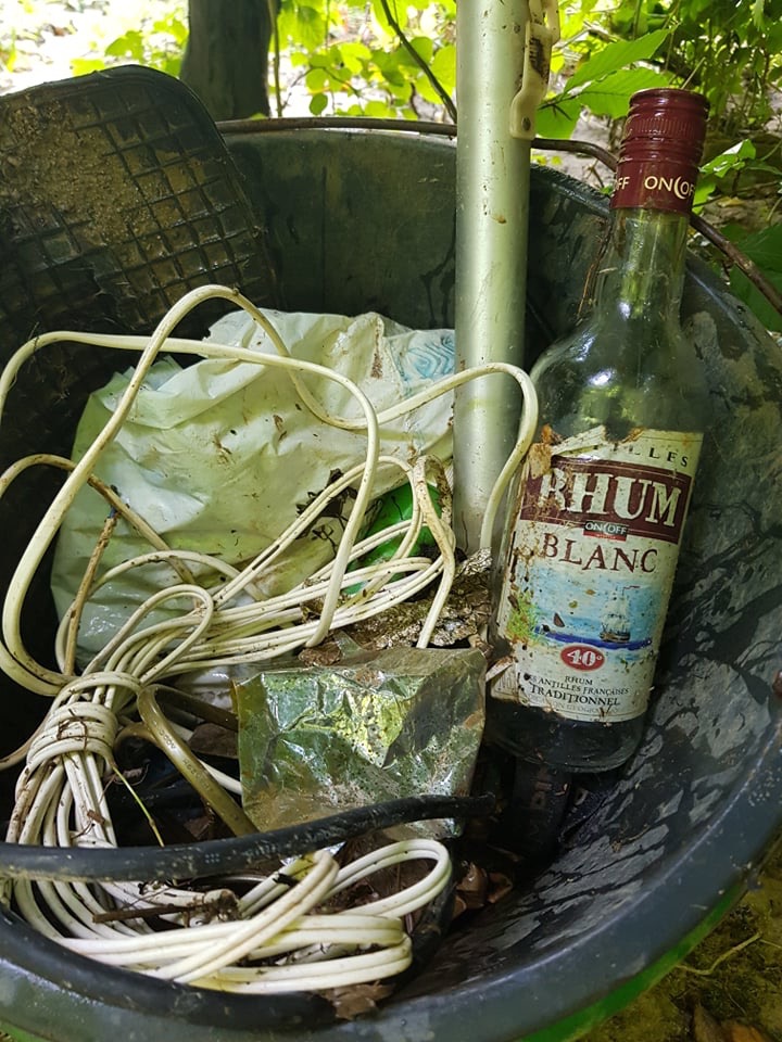 Partout où nous sommes déjà passé, nombreux déchets accrochés dans la végétation… qui peut imaginer la soupe d’immondices qui a voyagé dans la masse d’eau ?…
