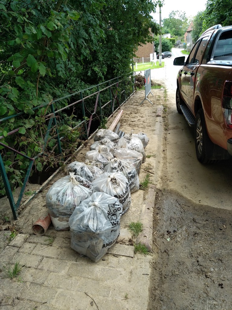 Des pneus stockés en crête de berge se sont fait la malle durant les inondations… pourtant, nous avions prévenu le propriétaire et lui avions demandé de les évacuer en 2020 !!!
