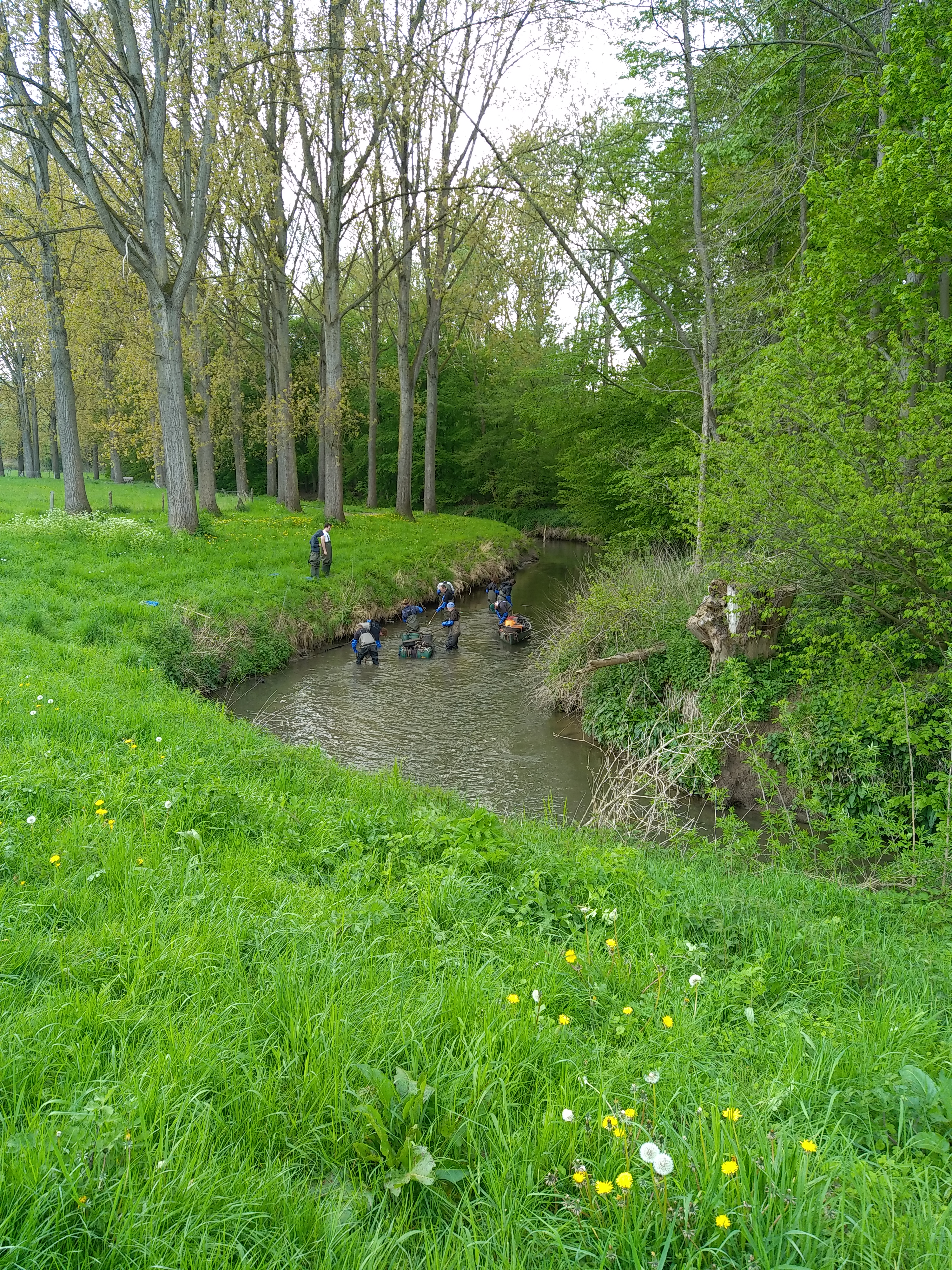 Les mois se suivent et ne se ressemblent pas, très très peu de pluies en ce mois d’avril, ainsi nous parvenons à fort bien avancer dans la Dyle au Douaire.