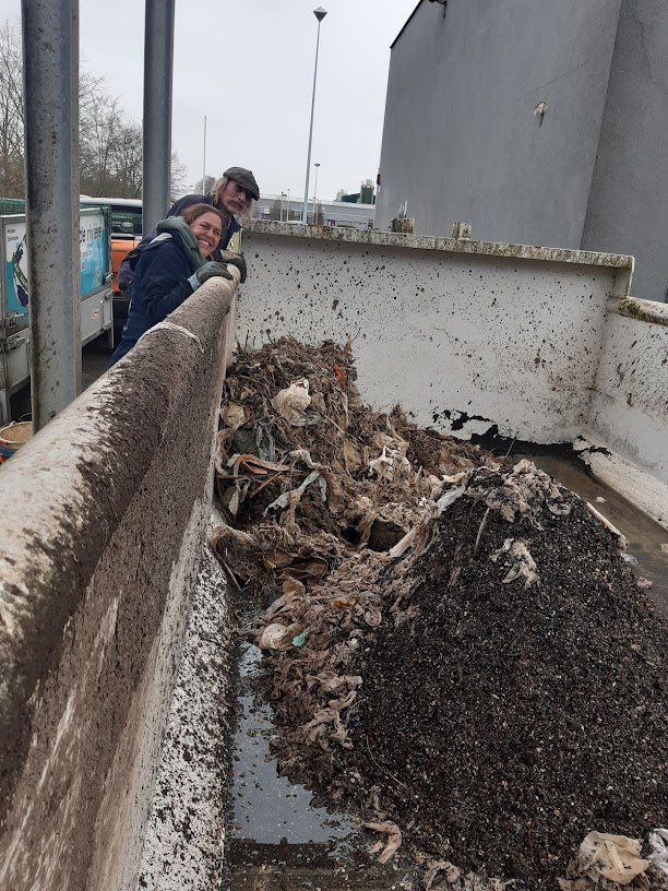 Malgré cela, sur un tout petit tronçon et dans des conditions difficiles nous parvenons à sortir 420 kg de lingettes sur un tronçon minuscule de 40 mètres maximum…