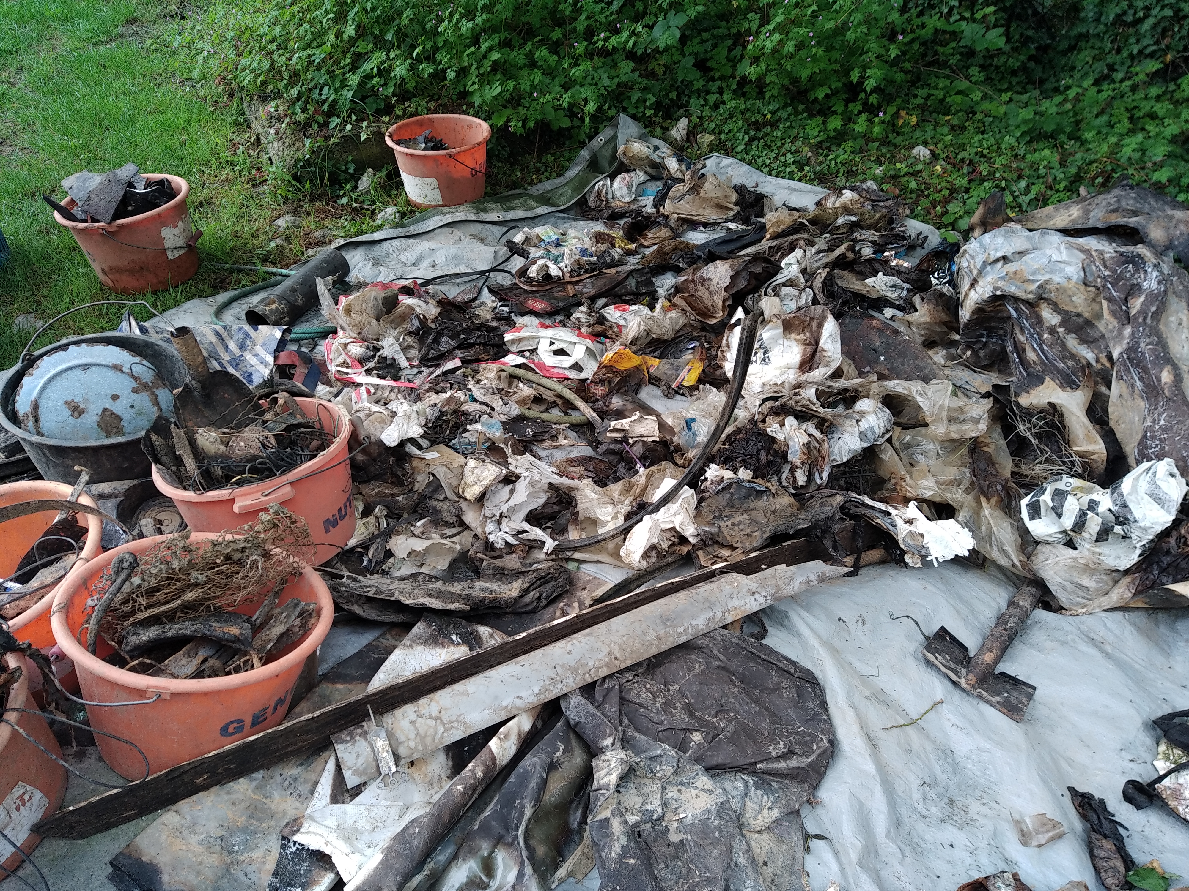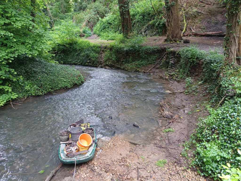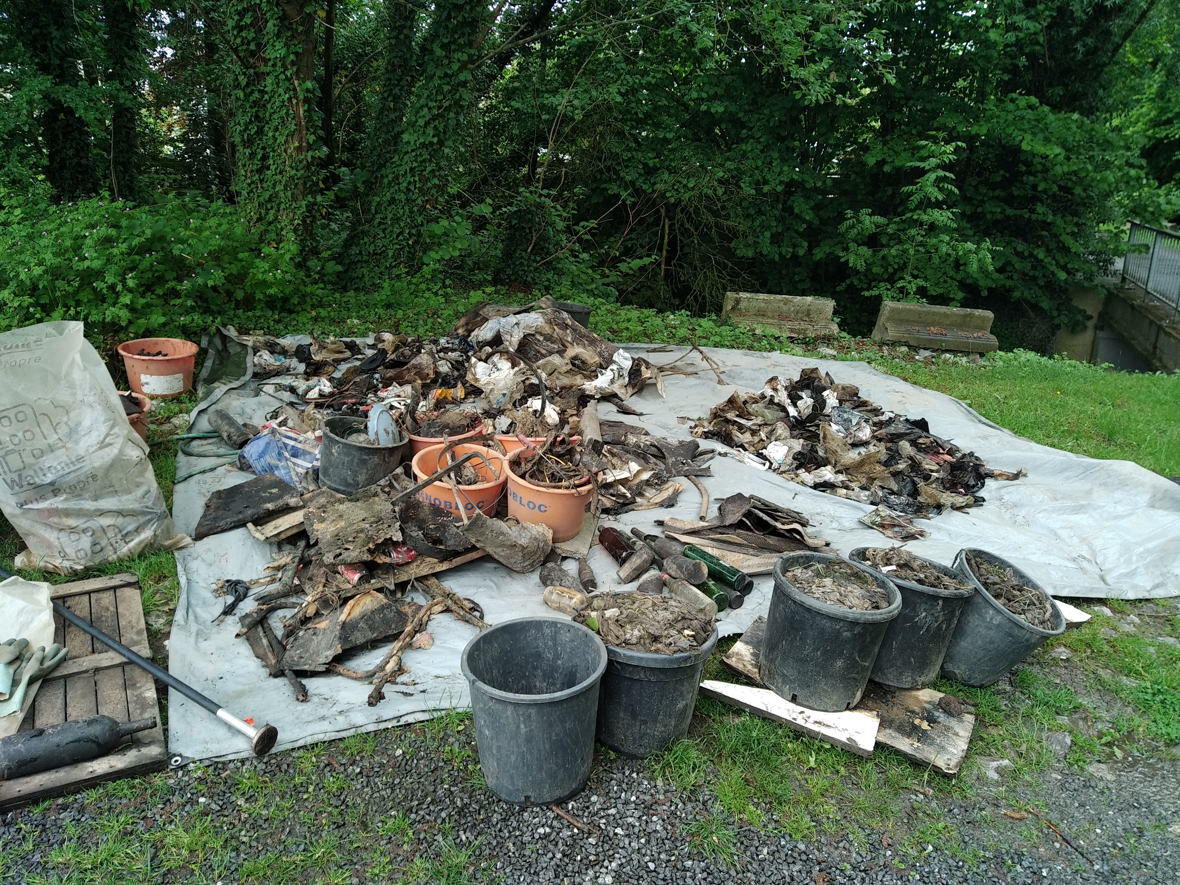 Plus la rivière est petite, plus nous trouvons facilement les déchets, ici comme trop souvent, ce sont les lingettes qui priment sur tout le reste…