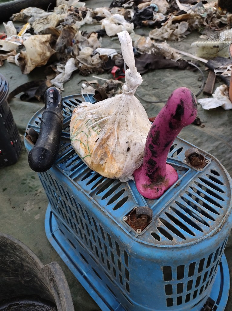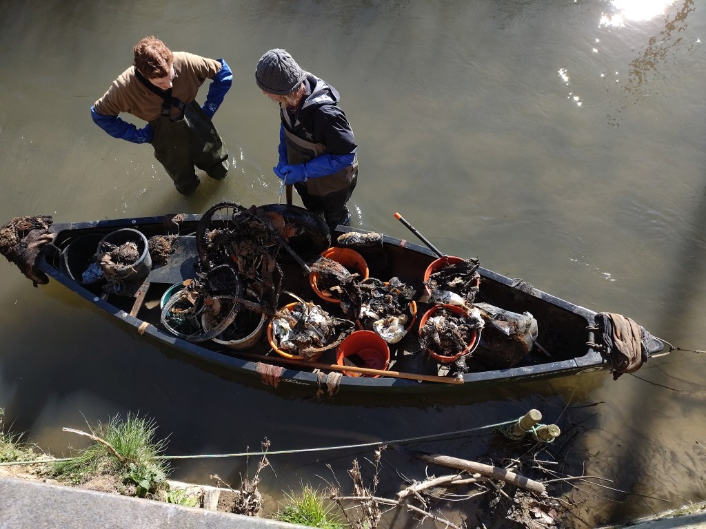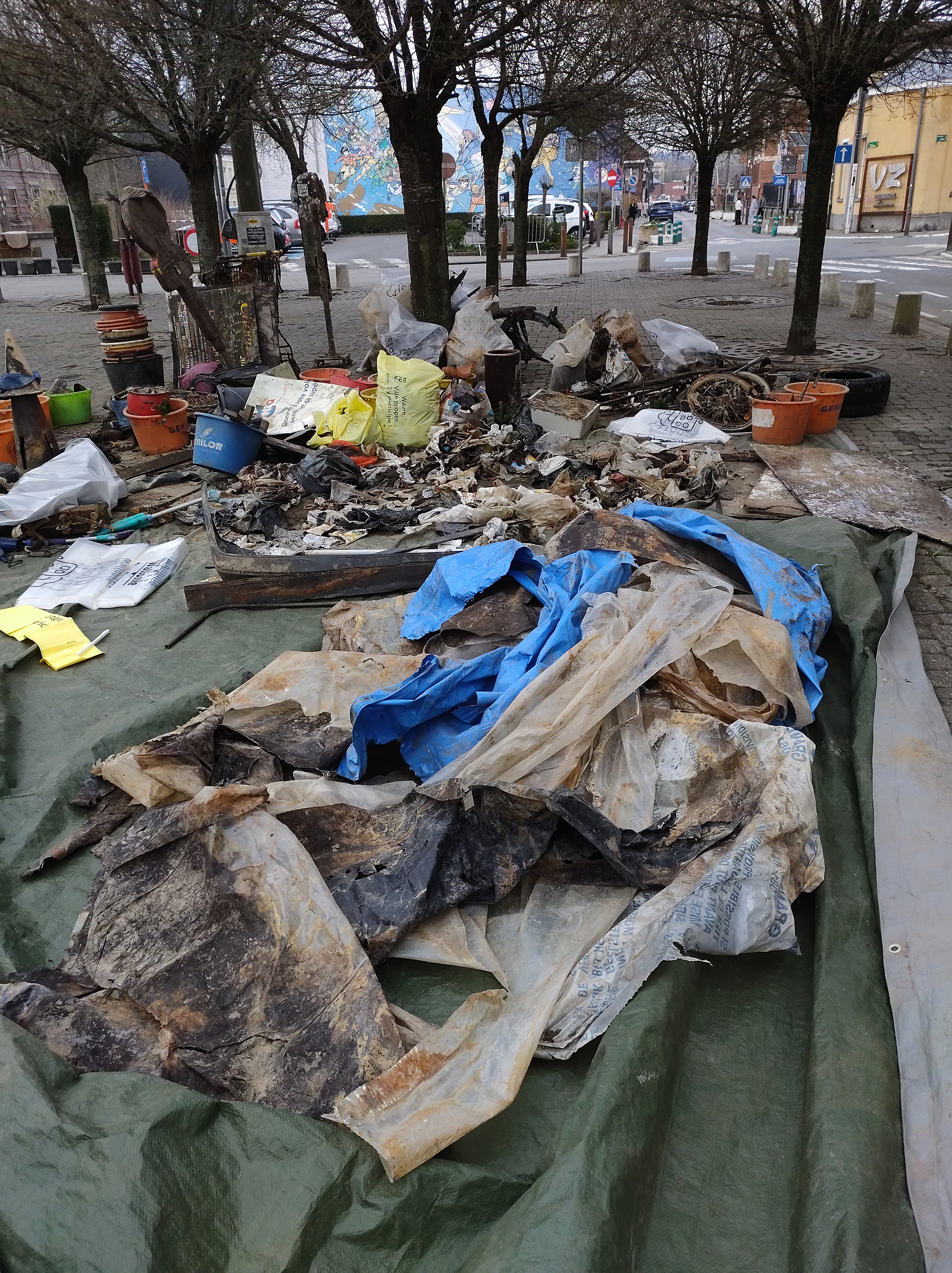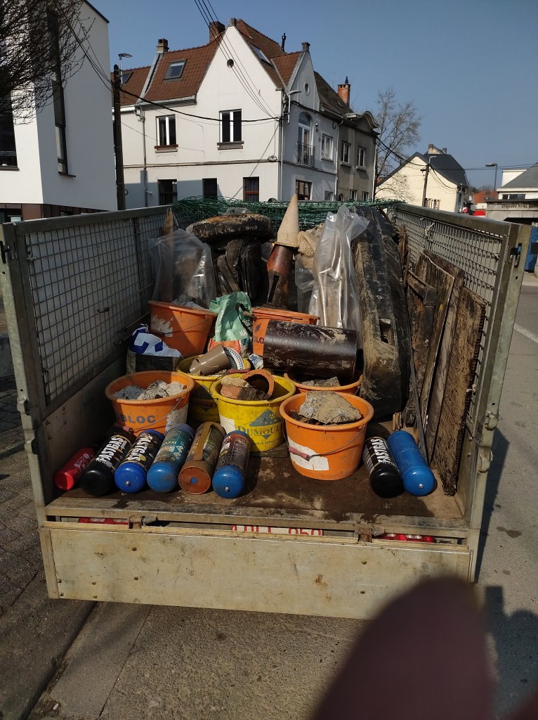 Evidemment nouveau tronçon rime avec beaucoup de vieux brols, le canoë Johnson se remplit très vite, la bâche eau’si, il faut suivre à l’emballage et aux évacuations. Certains déchets ont mystérieusement disparus… nous vous laissons deviner lesquels 🙂